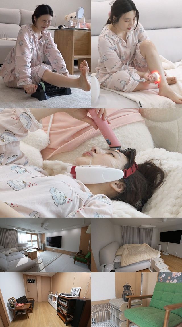 피부 관리를 시작으로, 두피 마사지기, 혈액순환을 돕는 종아리 마사지기 등 각종 관리 아이템을 총동원하고, 야무지게 운동까지 하며 조이만의 풀 코스 홈케어가 이어진다.