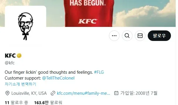 KFC X(트위터) 팔로우를 보면 11명이 있음.