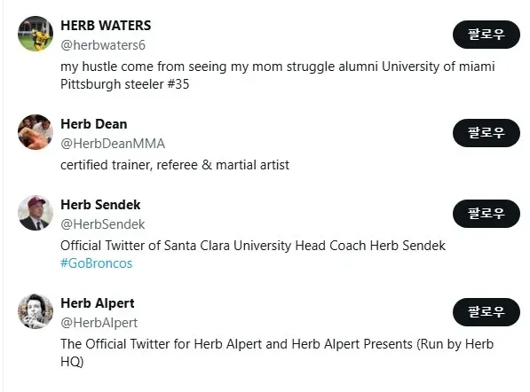 두번째는 6명의 남자 모두 이름에 허브가 들어감.