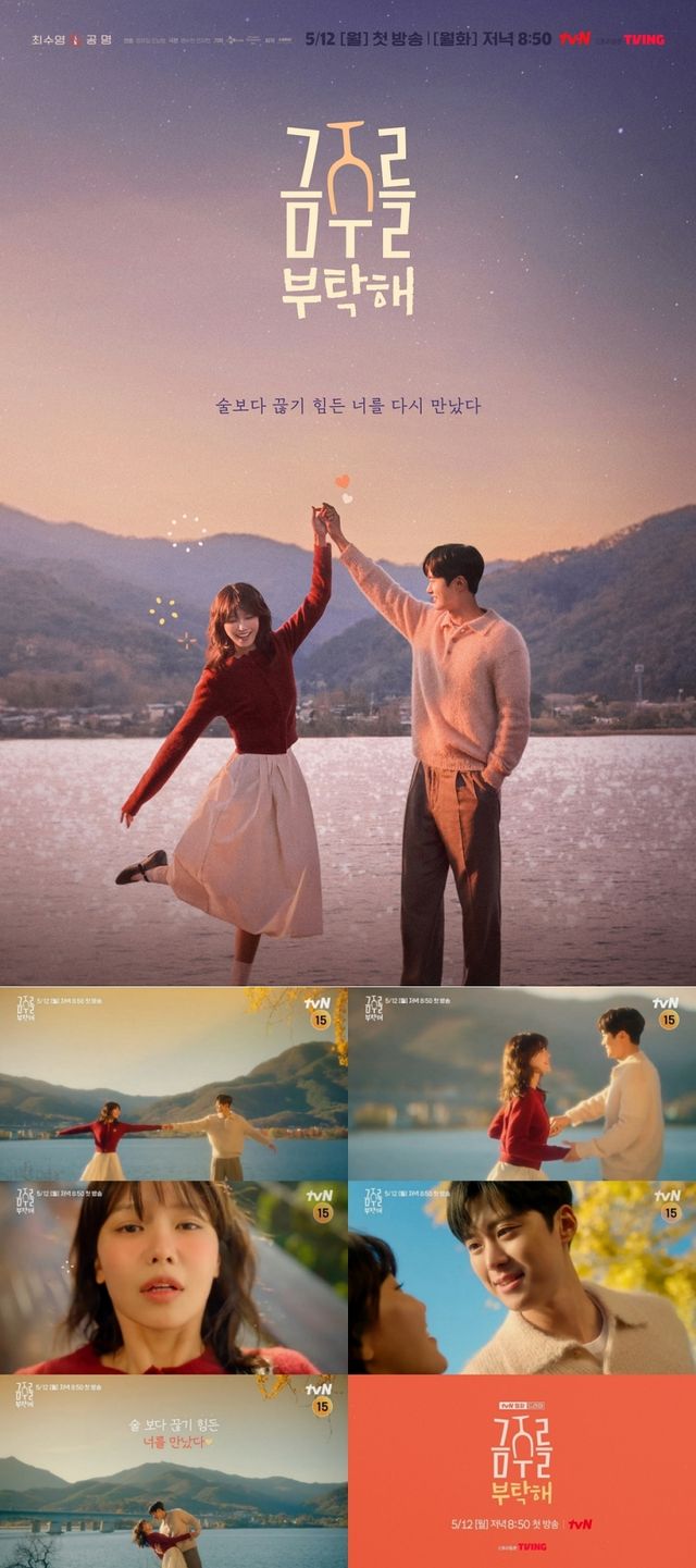 지극히 상식적인 애주가라 자평하던 한 여자가 술을 증오하는 첫사랑과 재회하며 인생 첫 금주에 도전하게 되는 맨정신 사수 로맨스가 그려질 tvN 새 월화드라마 ‘금주를 부탁해’는 오는 5월 12일(월) 저녁 8시 50분 첫 방송된다.