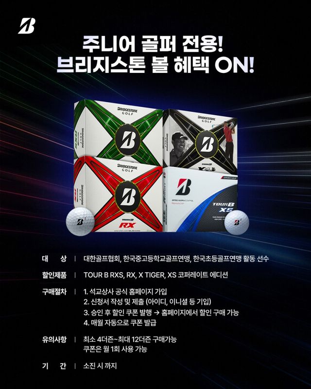 오랜 기간 주니어 골프 저변 확대에 힘써 온 석교상사 주니어 선수를 대상으로 브리지스톤골프가 골프공 50% 할인 판매한다고 10일 밝혔다.