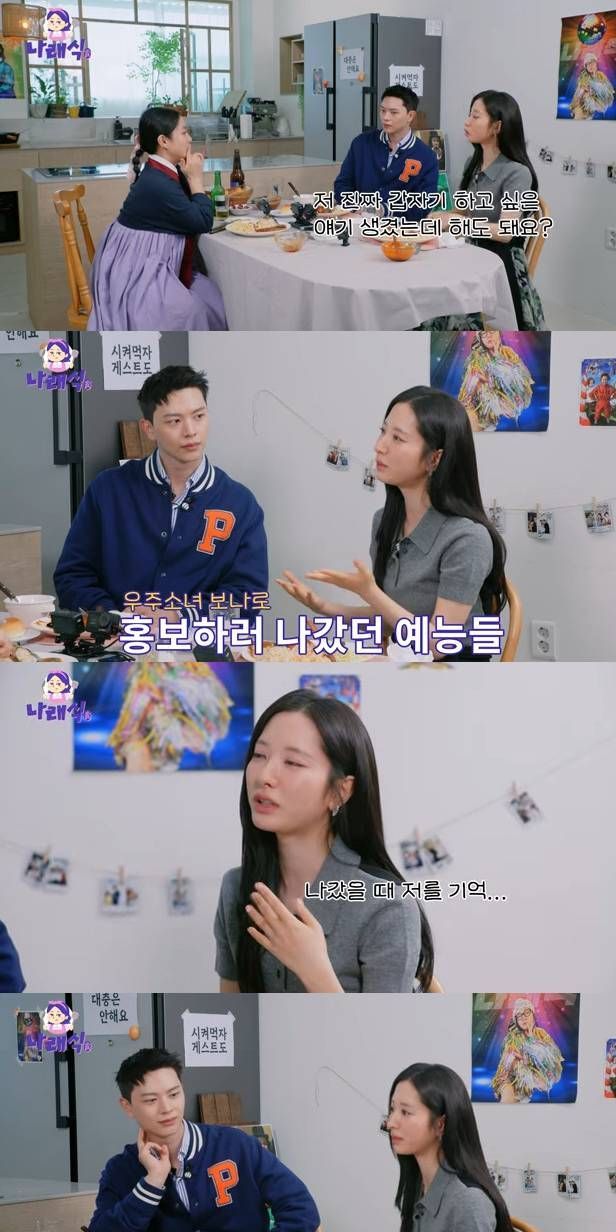 김지연은 "어쨌든 아이돌 신인 때는 홍보성으로 나가지 않냐. 회사에서 잡아와서 이런 예능들을 많이 하고, '스물다섯 스물하나'가 끝나고 예능이 많이 들어와서 (배우로) 나갔었는데 나갔을 때 저를 만난 걸 기억하는 사람이 많이 없었다. 근데 선배님은 기억하시더라"라며 박나래의 미담을 전했다.