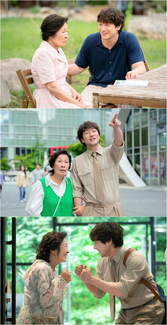 오는19일(토)첫 방송되는JTBC새 토일드라마‘천국보다 아름다운’(연출 김석윤,극본 이남규·김수진,제작 스튜디오 피닉스·SLL)측은10일,이해숙(김혜자 분)과 고낙준(손석구 분)의‘저 세상’케미스트리가 담긴 스틸컷을 공개했다.