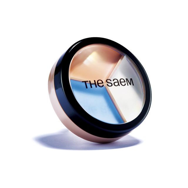 화이트와 베이지, 블루 등 세 가지 컬러 구성을 지닌 멀티 팟 컨실러. 콧대에는 화이트 컬러를 터치해 하이라이터 효과를, 잡티엔 베이지 셰이드를 얹어 결점 커버를, 입가엔 블루 컬러를 ‘콕콕’ 찍어 블렌딩하면 노란 기 보정을 한 번에 할 수 있다. 커버 퍼펙션 트리플 팟 컨실러, 06 블루 베이지, 1만2천원, The Saem.