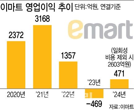 이마트의 이 같은 전략은 결과적으로 일부 성공을 거뒀다. 2023년만 해도 적자였던 이마트는 불과 1년 만에 연결기준 영업이익이 940억원 개선된 471억원을 기록했다. 지난해 12월 통상임금 확대 적용 판결로 인한 일회성 비용(2132억원)을 제외하면 이마트의 실질 영업이익은 2603억원까지 늘어난다.