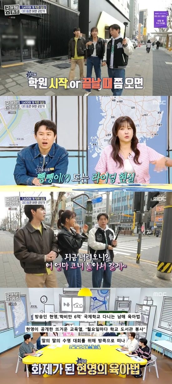 현영은 "대치동 학원이 끝나는 메인 시간인 저녁 7~8시 쯤에 오면 헬이다. 넘어오는 삼성동까지는 괜찮은데, 이 쪽은 정말 헬이다"라고 고개를 내저었다.