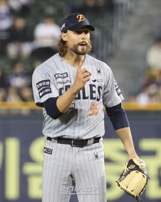 10일 오후 잠실야구장에서 열린 2025 프로야구 한화와 두산 경기. 한화 선발 와이스가 8회 두산 김기연을 삼진아웃시키고 교체 되고있다. 잠실=정시종 기자 capa@edaily.co.kr