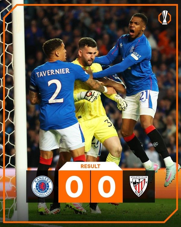 11일(한국시간) 스코틀랜드 글래스고의 아이브롯스 스타디움에서 2024-2025 유로파리그 8강 1차전을 치른 아틀레틱클루브(빌바오)가 레인저스와 0-0으로 비겼다. 빌바오는 오는 18일 홈구장 에스타디오 산 마메스에서 열릴 8강 2차전에서 반전을 노린다.