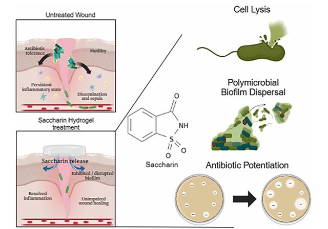이 연구는 단순한 실험실 수준에서 그치지 않았다. 연구팀은 사카린을 포함한 하이드로겔 드레싱을 개발해 실제로 상처 부위에 적용했으며, 그 결과 현재 병원에서 쓰이는 은 기반 항균 드레싱보다 더 우수한 항균 효과를 보여준 것으로 확인됐다. 내성균이 피부나 상처 부위에서 감염을 일으킬 때 이 드레싱이 효과적으로 작용할 수 있다는 것이다.