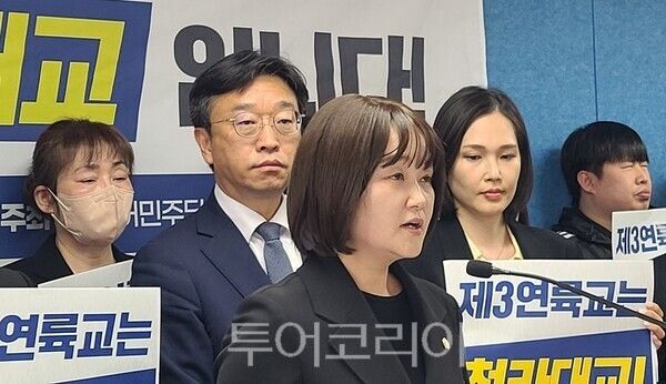 [투어코리아=이창호 기자] 더불어민주당 김원진 인천 서구의원이 11일 오후 인천시청 브리핑룸에서 기자회견을 열고 오는 12월 준공을 앞둔 제3연륙교의 명칭을 ‘청라대교’로 확정하기를 인천시에 촉구하고 있다. 2025.04.11. 투어코리아 이창호 기자