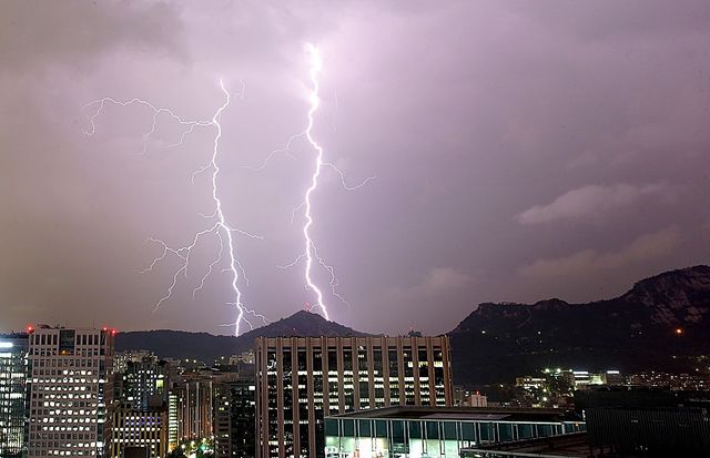 낙뢰가 내리치는 서울 도심 모습. 기사 이해를 돕기 위한 자료 사진 / 연합뉴스