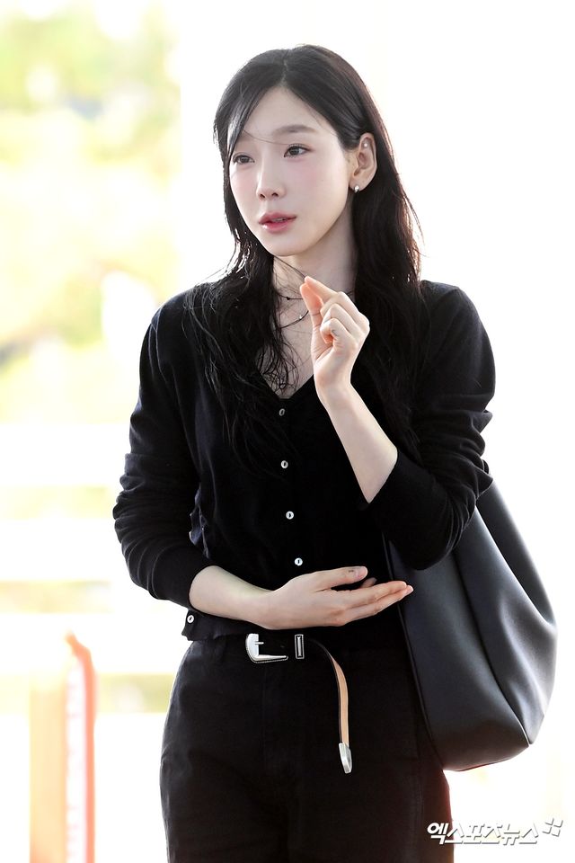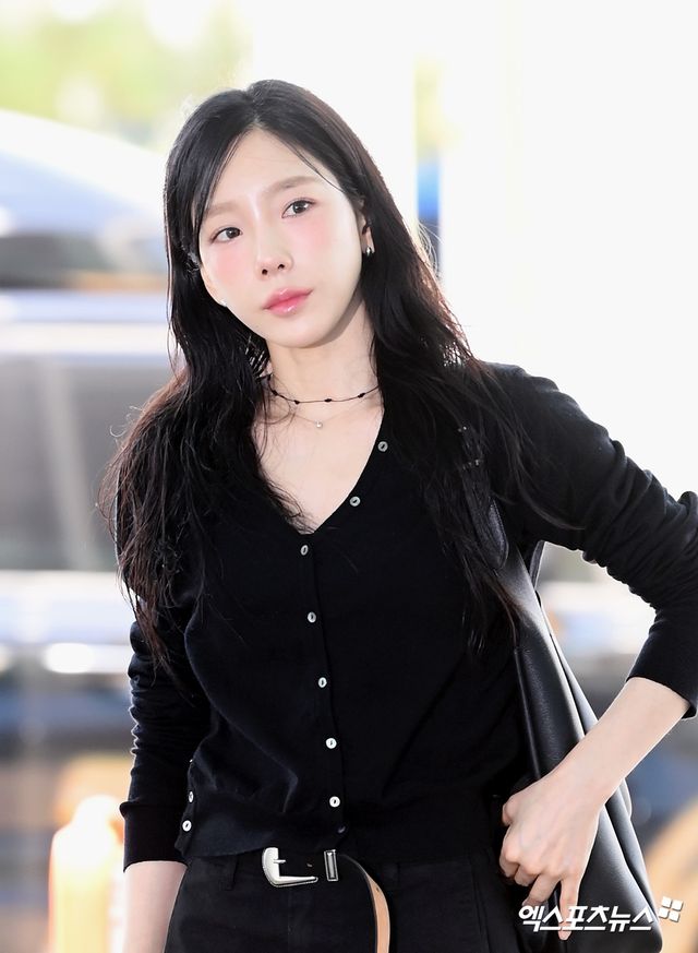 11일 오후 해외 일정 참석 차 인천국제공항에 모습을 드러낸 태연은 블랙으로 통일한 심플한 공항 패션으로 시선을 사로잡았다. 버튼 디테일이 들어간 블랙 카디건에 같은 톤의 와이드 팬츠를 매치해 깔끔하면서도 시크한 분위기를 연출했다.