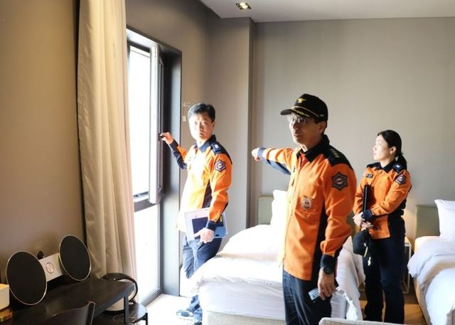 아울러 ▲소화기, 경보설비 등 소방시설 정상 작동여부 ▲피난 방화시설 유지·관리 실태 ▲방염물품 사용 여부 및 성적서 보관 상태 ▲피난설비 장애물 설치 실태 등을 집중 점검했다. 특히, 각 객실 및 공용부에 피난 안내도가 부착됐는지도 확인하며 안전관리를 철저히 했다.