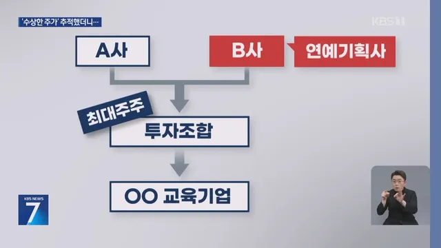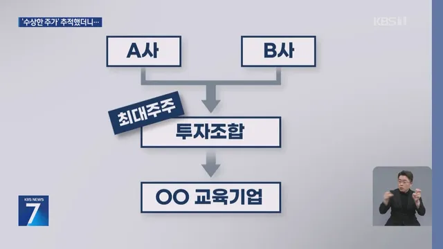 경찰은 연루된 주식 계좌를 추적해 시세차익 행방을 쫓고 있습니다. 문제의 교육기업은 지배구조가 독특합니다.