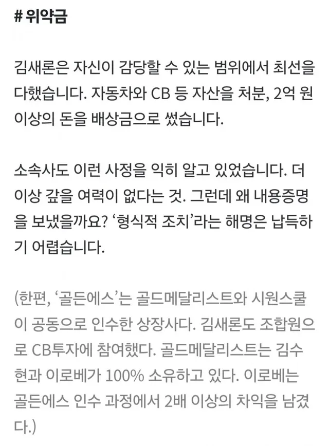지분 50% 이상을 보유한 최대 주주는 '모 투자조합'. 이 조합은 50대 50으로 두 곳이 출자했는데, 그중 한 곳이 모 연예기획사입니다.