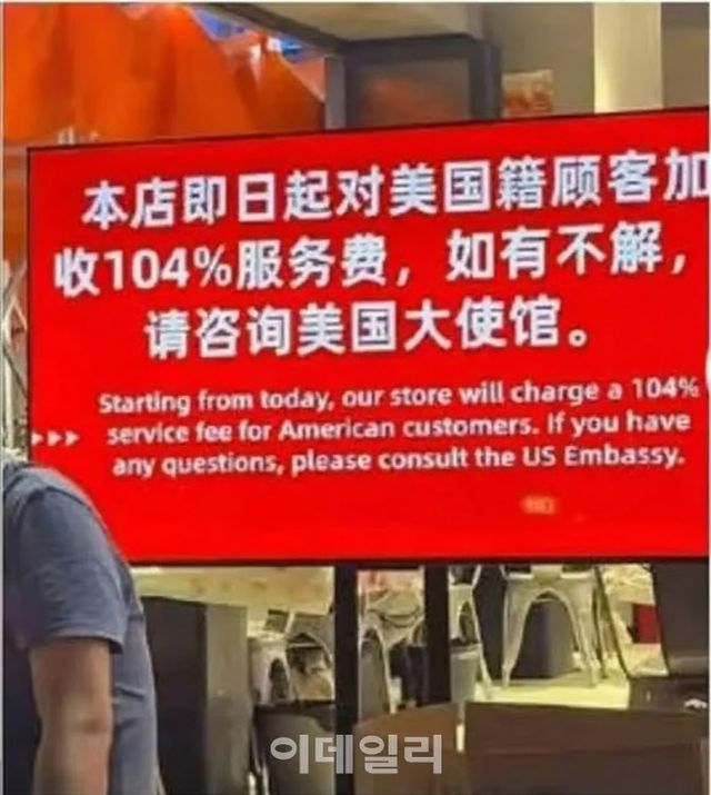 중국 소셜미디어에는 우한의 한 고깃집에서 “미국 국적의 손님은 추가 서비스 비용으로 104%를 내세요. 이해가 안 되는 게 있다면 미국대사관에 가서 문의하세요”라는 안내문이 퍼지기 시작했다.