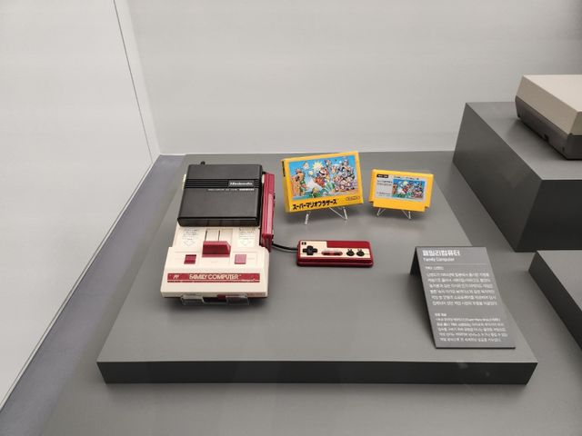 그리고 1983년 게임 시장의 중흥기를 이끈 '패밀리 컴퓨터'가 일본에서 탄생한다. 지금도 잘 알려진 '슈퍼마리오', '젤다', '별의 커비' 등이 이 시기에 이름을 떨친다. 이처럼 일본을 중심으로 게임 산업이 본격적으로 성장했지만 한국에는 그 여파가 조금 늦게 닿았다. 게임 기기들이 비싼 것도 있었지만 일본 게임의 수입에 제한이 걸려 있었기 때문이다. 그런 가운데 1987년 한국 첫 개발 게임 '신검의 전설'이 탄생한다. 박물관은 아쉽게도 두 번째 시리즈만 소장하고 있다.