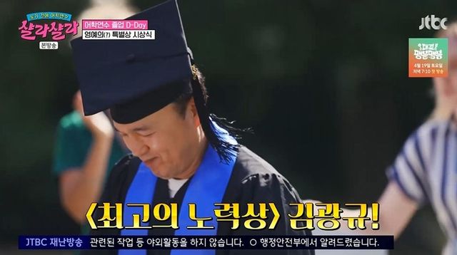졸업 기념 바비큐 파티에서 초급반 선생님 제이드는 성동일, 김광규에게 “둘 다 늘었다. 자신감도 늘었다”라며 “첫날 광규는 의기소침해서 한마디도 못 했다. 그런데 이젠 자신 있게 모두와 대화한다. 가장 중요한 건 최선을 다하는 거다”라고 조언했다.