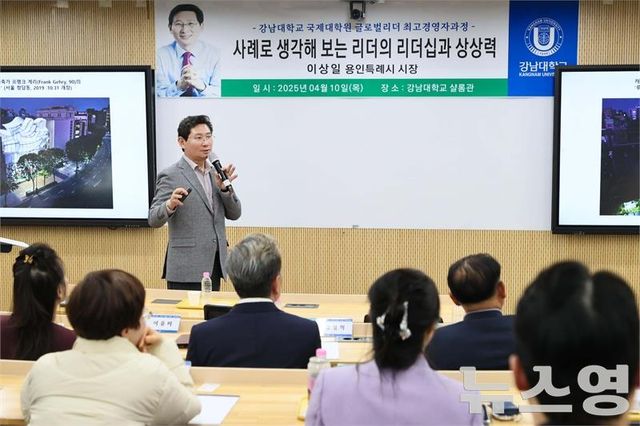 (뉴스영 이현정 기자) 이상일 용인특례시장은 10일 저녁 강남대학교에서 ‘강남대학교 국제대학원 제2기 글로벌리더 최고경영자과정’ 수강생을 대상으로 특강을 했다.