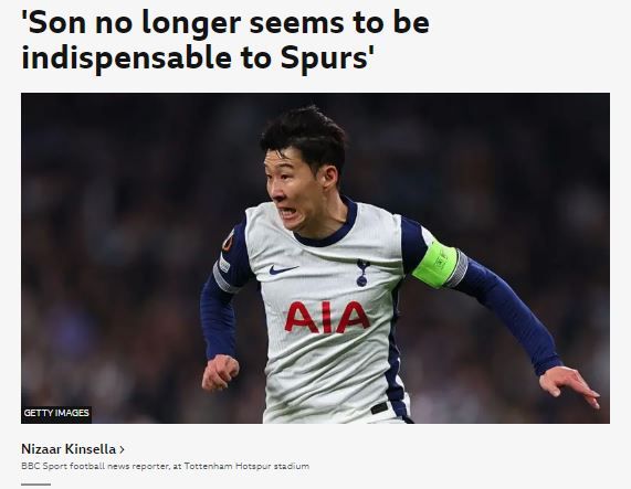 'BBC' 외에도 영국 현지 언론 '풋볼 인사이더'는 "손흥민은 토트넘에서 끝났다"는 팬들의 반응을 전하며, 그의 최근 경기력이 "형편없다"는 평가를 받고 있다고 보도했다.