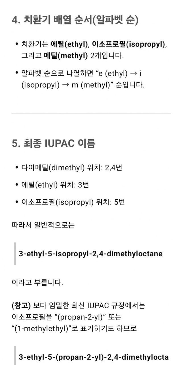 (참고로 모체인 가장 긴 사슬 탄소원자 10개임)