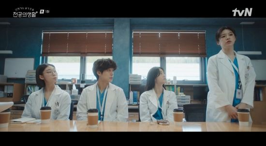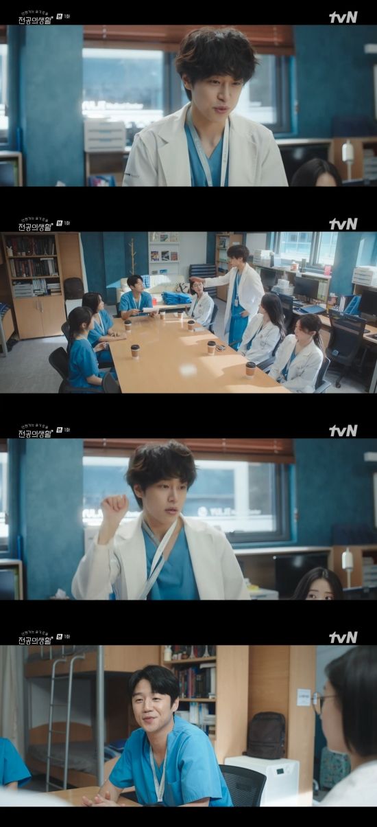 12일 첫 방송된 tvN 새 토일드라마 '언젠가는 슬기로울 전공의생활'(이하 '언슬전') 1회에서는 구도원(정준원 분)이 1년차 전공의 오이영(고윤정), 표남경(신시아), 엄재일(강유석), 김사비(한예지)에게 자기소개를 듣는 모습이 그려졌다.