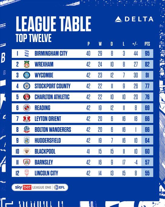 이날 버밍엄 시티는 경기를 치르지 않았으나 2위 렉섬이 위건 애슬레틱과 0-0 무승부를 거두면서 남은 경기 결과에 상관없이 조기 우승을 확정지었다.