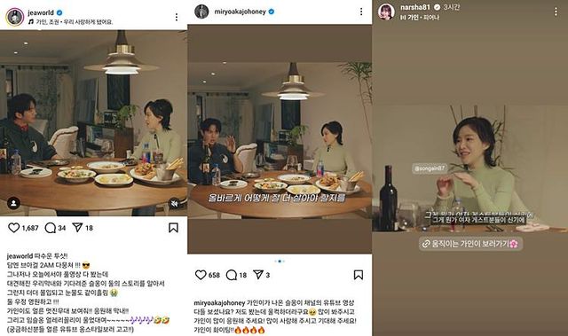 먼저 제아는 “대견해진 우리 막내와 기다려준 슬옹이 둘의 스토리를 알아서 그런지 더더 몰입되고 눈물도 같이 흘림”이라며 “가인이도 얼른 멋진 무대 보여줘!! 응원해 막내!!”라며 가인의 컴백 소식에 진심으로 기뻐했다. 미료 역시 “가인이가 나온 슬옹이 채널의 유튜브 영상 다들 보셨나요?. 저도 봤는데 울컥했다”라며 “가인이 많이 응원해 주시고 사랑해 달라”고 당부했다.