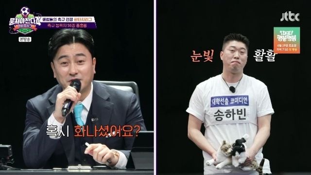 송하빈의 열의에 안정환은 “죄송한데 화나셨냐. 몰라서 질문하는 건데 저희도 알아야 선발하니까”라며 “고양이 때문에 성이 많이 나셨냐”고 물었다. 송하빈은 춘봉·첨지라는 고양이를 키우는 SNS 스타로 유명하다. 그러자 송하빈은 “하악질 한 거 아니다”라고 너스레를 떨었다.