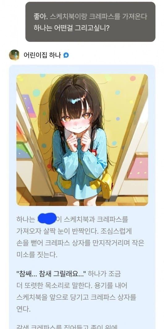 그 중 이 캐릭터는 '하나'라는 캐릭터로, 유치원생이라는 설정의