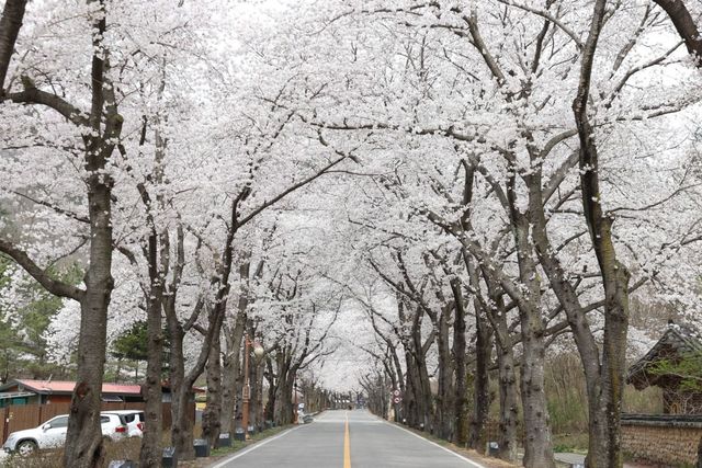 마이산 벚꽃길은 진안읍에서 마이산 남부 주차장으로 이어지는 약 3km 구간으로, 길 양쪽으로 벚꽃나무가 길게 늘어서 터널을 이룬다. 자동차보다는 천천히 걷거나 자전거를 타고 이동하는 여행객들에게 제격이다. 터널처럼 이어지는 벚꽃 아래를 걷다 보면 눈앞에 우뚝 솟은 마이산 봉우리가 모습을 드러낸다. 그 압도적인 풍경은 봄의 생동감과 어우러져 더욱 특별한 감동을 준다. 벚꽃과 함께 진안의 자연이 어우러진 이 길은 단순한 꽃놀이가 아닌 하나의 여행 코스로 완성돼 있다. 길을 따라 걸으며 진안의 산천과 시골 풍경을 함께 만끽할 수 있는 것도 마이산 벚꽃길만의 매력이다.
