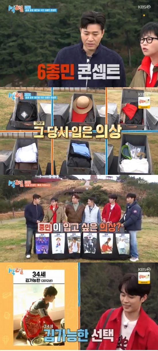 멤버들은 김종민이 엄정화 백댄서를 하던 시절인 20살 김포이즌, '원피스' 주제가 불렀던 25살 김우연히, '1박 2일' 첫 촬영을 했던 29살 김첫촬영, 31살 김공익, 레전드짤을 탄생시켰던 34살 김가능한, 38살 김뜨또 중 하나를 골라야 했다.