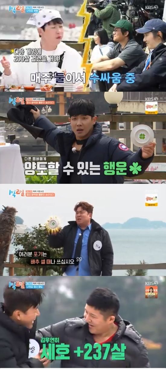 13일 방송된 KBS 2TV '1박 2일 시즌4'에서는 김종민, 문세윤, 조세호, 이준, 딘딘, 유선호가 경남 거제로 떠나는 모습이 전파를 탔다.