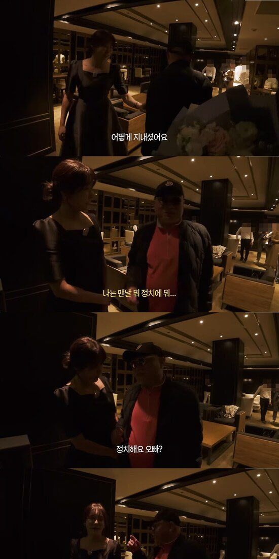 현영이 “어떻게 지내셨어요?” 묻자 김흥국은 “나는 맨날 정치에 뭐. 그쪽 애들이...”라고 말끝을 흐렸다.