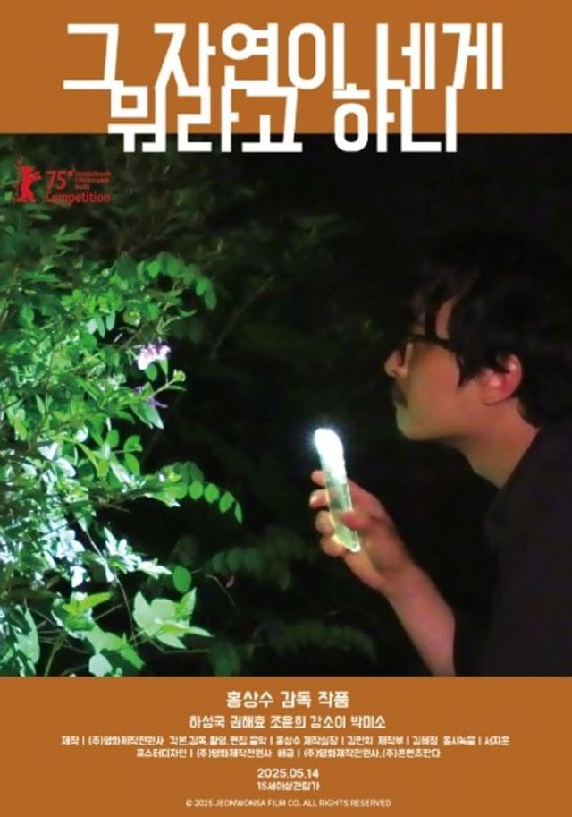 홍상수 감독의 33번째 장편 영화인 ‘그 자연이 네게 뭐라고 하니’는 삼십 대 시인인 동화가 연인 준희의 집을 우연히 방문하면서 펼쳐지는 이야기를 담고 있다. 홍 감독이 연출·각본 등을 맡았고, 배우 김민희가 제작실장을 했다. 하성국·권해효·조윤희·강소이·박미소 등이 출연했다.
