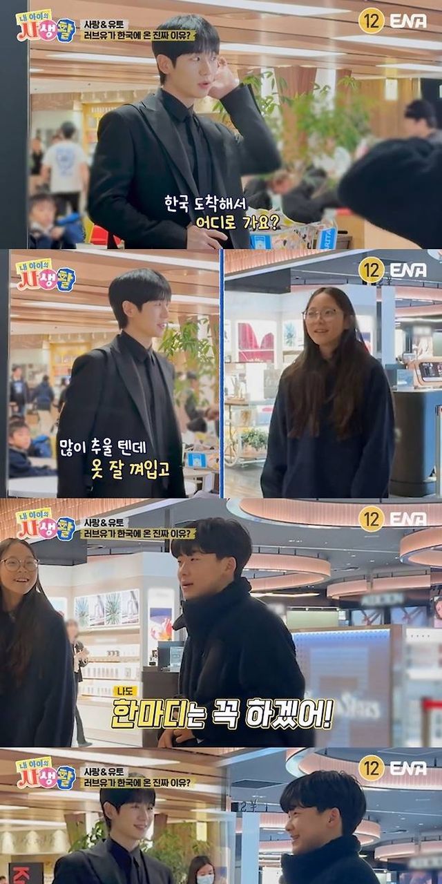 13일 방송한 ENA 예능프로그램 ‘내 아이의 사생활’에서 추사랑과 유토는 한국에서의 화보 촬영을 위해 일본 나리타 공항에 도착했다.