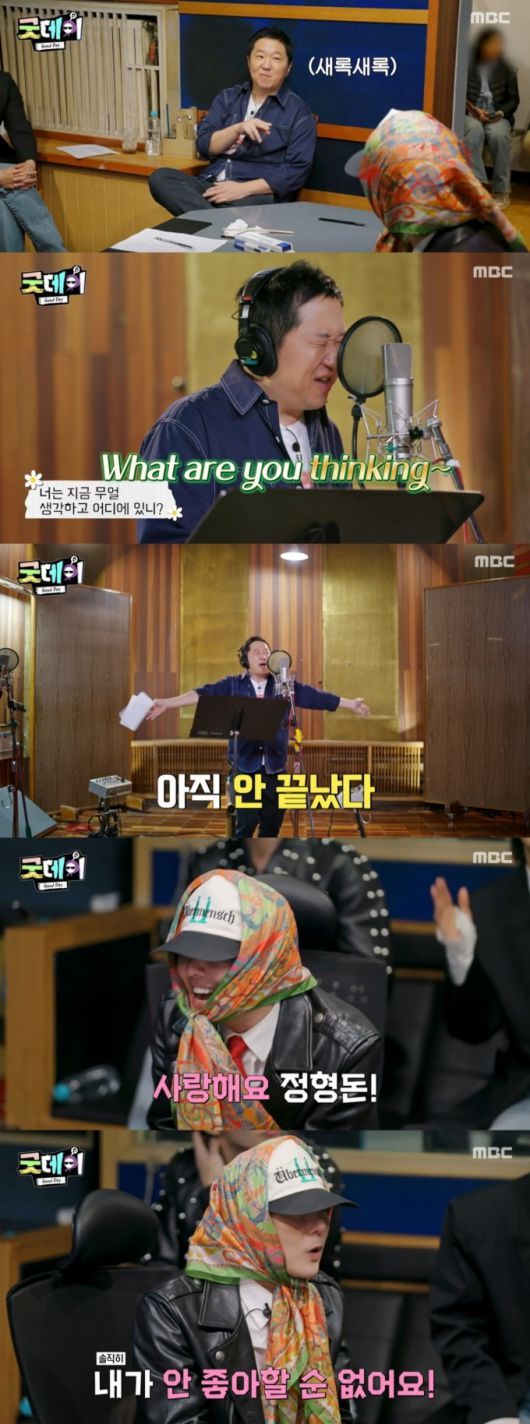 13일 방송된 MBC 예능 '굿데이' 마지막 회에서는 지드래곤과 정형돈이 2013년 '무한도전' 가요제 이후 12년 만에 녹음실에서 만나는 모습이 그려졌다. 지드래곤은 녹음에 앞서 "칠(Chill)하게 해달라"고 요청했고, 정형돈은 천재적인 애드리브로 화답했다. 정형돈의 계속되는 애드리브에 지드래곤은 박수를 치며 만족스러운 표정을 지었다.