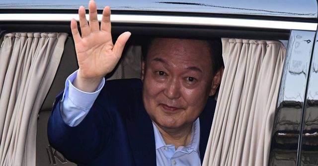 윤석열 전 대통령이 지난 11일 서울 서초구 아크로비스타 사저 앞에 도착해 지지자들을 향해 손을 흔들고 있다 / 뉴스1