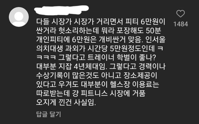 동네 작은 헬스장 가도 기본으로 5만원은 넘기고