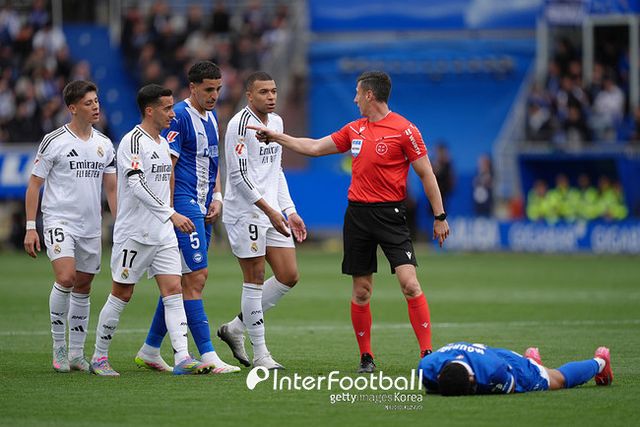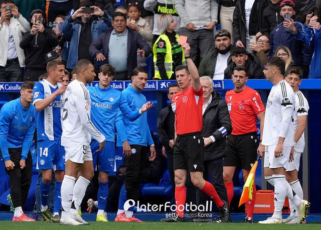 레알은 에두아르도 카마빙가 결승골로 1-0 승리를 기록했다. 결과와 더불어 음바페 퇴장이 주목됐다. 음바페는 전반 38분 안토니오 블랑코 정강이를 향한 태클로 퇴장을 당했다. 비디오 판독 후에도 퇴장을 당했다. 음바페의 레알 입성 후 첫 레드카드였다. 개인 경력으로 보면 2019년 파리 생제르맹(PSG)에서 뛸 때 이후 6년 만에 퇴장이다.