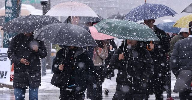 난데없는 3월 대설주의보가 발효된 지난달 18일 오전 서울 광화문네거리에서 시민들이 출근길 발걸음을 옮기고 있다 / 뉴스1
