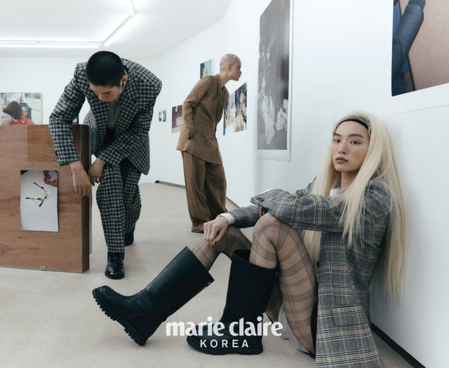 진희가 입은 셰퍼드 체크 재킷과 팬츠, 셔츠, 부츠 모두