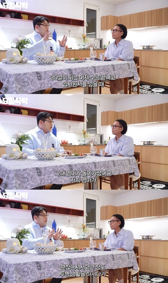"괜찮다"는 정재형의 말에 문상훈은 "20살이 되고, 수능 끝난 후 입시원서를 넣을 때 엄마가 2년 정도 투병 생활을 하시다가 돌아가셨다"고 말을 이었다.