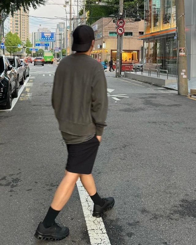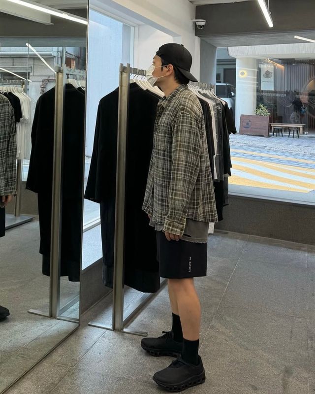 이동휘의 픽은 러닝 쇼츠. 러닝을 취미로 즐기는 이동휘는 러닝 웨어를 일상복과 믹스한 패션을 요즘 자주 보여주는데, 주로 온러닝의 블랙 컬러 쇼츠를 오버핏의 체크 셔츠, 스웨트 셔츠, 티셔츠 등에 매치하는 식이다. 슈즈로는 블랙 삭스와 러닝화를 주로 매치한다. 러닝 쇼츠는 가볍고 통기성이 좋아 땀이 많은 사람이라면 여름 일상복으로도 제격일 아이템.