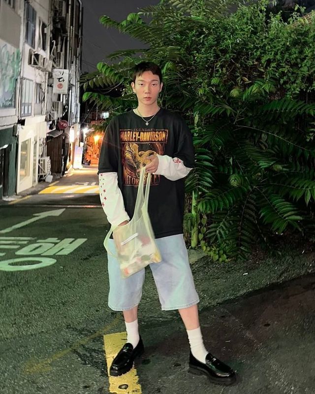 패션 인플루언서 페퍼 유의 픽은 데님 버뮤다 쇼츠. 극한의 더위를 자랑하는 한국의 여름에 짧은 바지는 입어보고 싶지만, 첫 도전이라 부담스러울 때 페퍼유의 픽 처럼 긴 듯한 기장감의 데님 버뮤다 쇼츠부터 시작해 보면 좋을 듯. 이런 디자인의 데님 쇼츠는 베이직한 셔츠, 면 티셔츠나 피케 티셔츠 등 대부분의 상의와 무난하게 잘 어울린다.