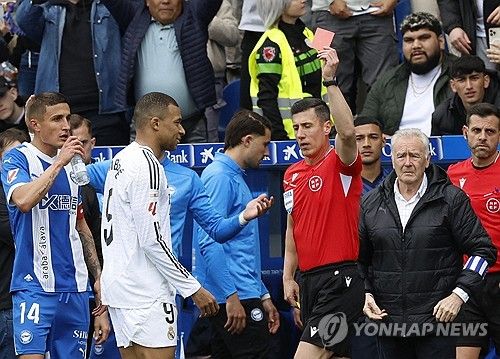 레알 마드리드의 공격수 음바페는 13일(한국시간) 스페인 비토리아 가스테이스의 캄프 데 풋볼 멘디소로사에서 열린 데포르티보 알라베스와의 2024-25시즌 스페인 라리가 31라운드 원정 경기에서 알라베스의 안토니오 블랑코의 종아리를 밟아 퇴장당했다.