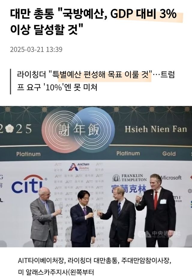 대만의 올해 GDP대비 국방비는 약 2.5%이다