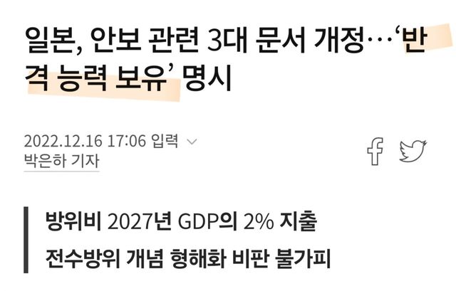 2022년 일본은 안보문서개정을 하였고