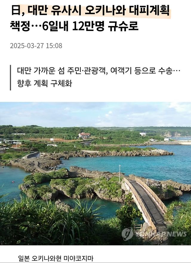 오키나와 현민 12만명 대피훈련 을 구체화 했다