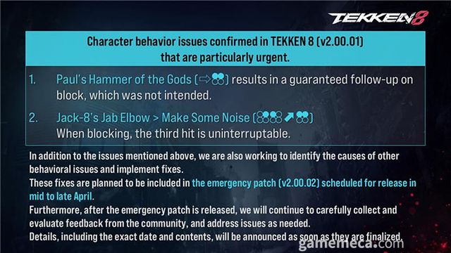 ▲ 제작진은 4월 중하순 중으로 밸런스 및 버그를 수정할 예정이다 (사진출처: 철권 공식 X)